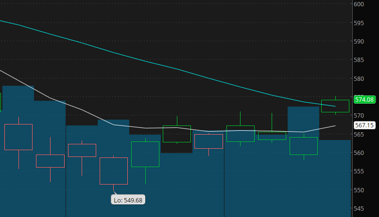 On 3.13.25 SPY hit a low of 549.68, for about 6 trading days it began to move up a little but mostly sideways.