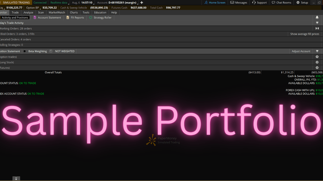 This allows you to learn and make adjustments in a simulated environment safely while you learn what buttons to press and how to monitor things after a trade is filled.